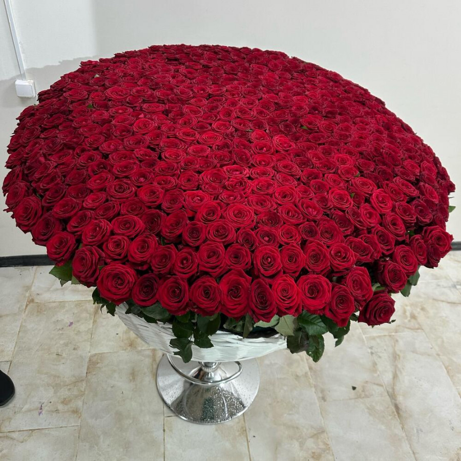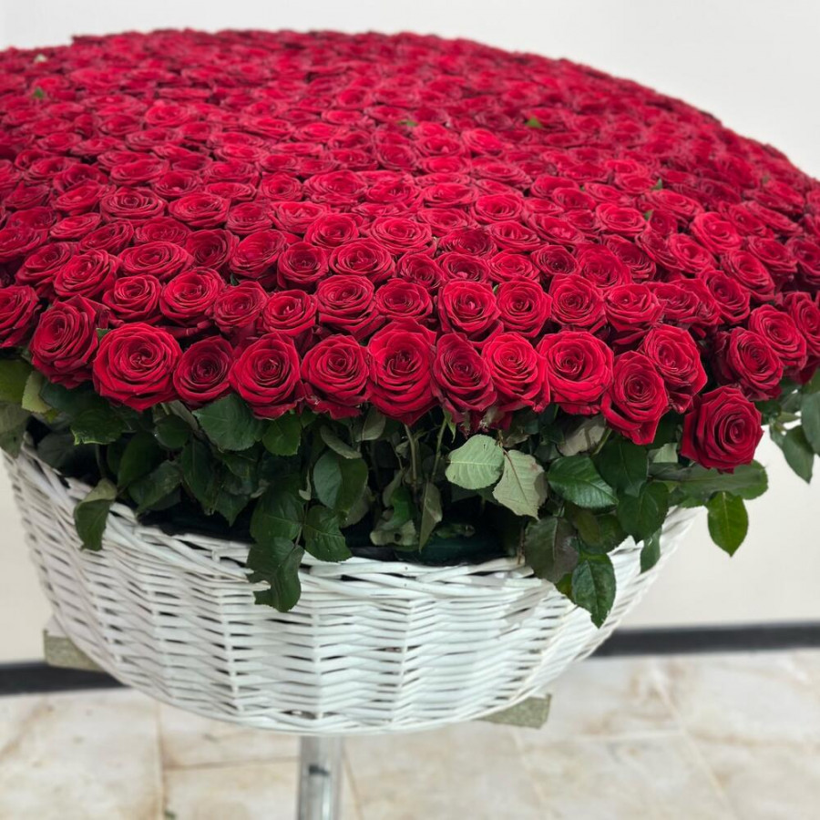 На фото букет из 501 красной розы в белой корзине. В составе: роза 501 шт, оазис флористический 5 шт, корзина (xl) 1 шт, . Все цветы свежие и ароматные, букет красиво оформлен и отлично подходит для подарка. Доступна доставка цветов или самовывоз.